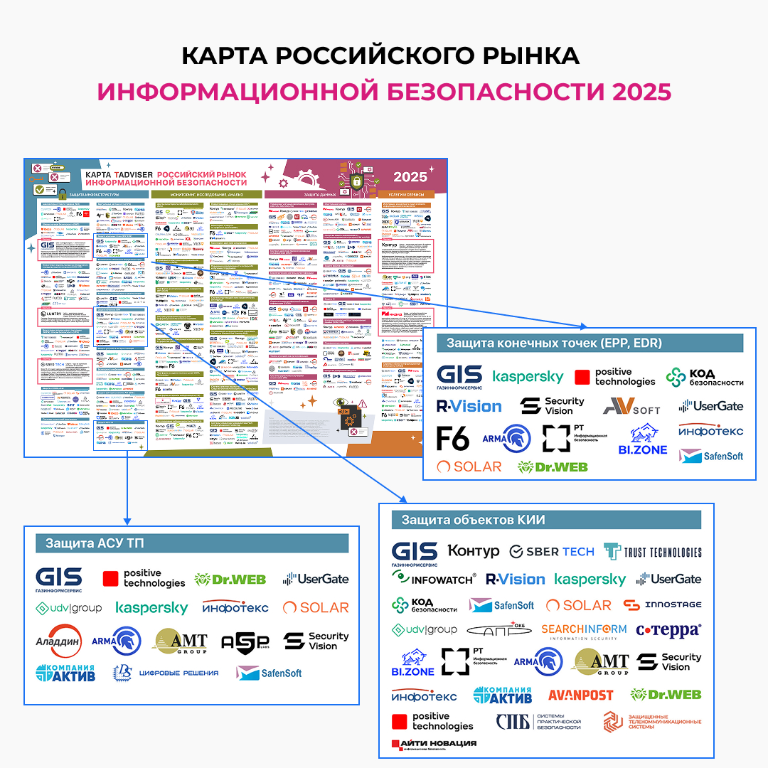 Аналитический центр TAdviser подготовил новую карту российского рынка информационной безопасности (ИБ). На карте отмечено более 290 отечественных компаний-разработчиков продуктов и сервисов в области кибербезопасности, а также поставщиков услуг ИБ.